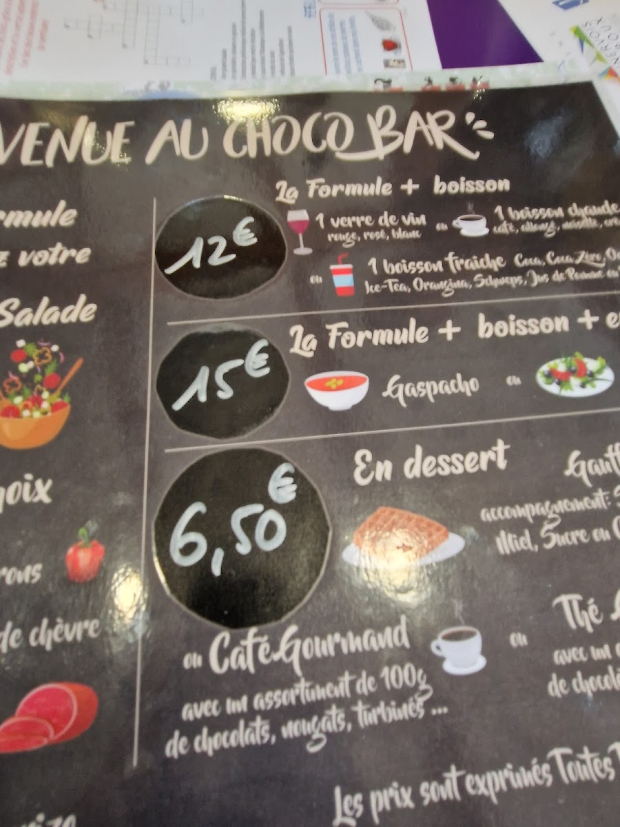 Choco Bar Menu